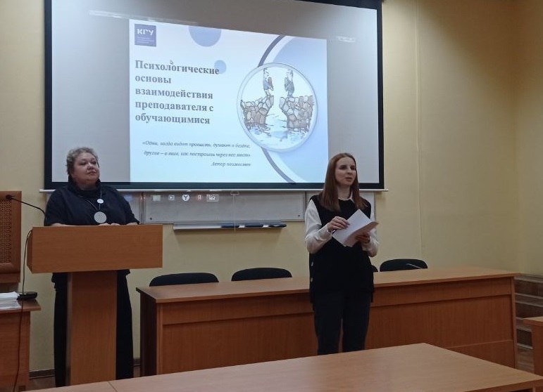 Большой интерес и отклик со стороны преподавателей вызвало выступление директора Института педагогики и психологии КГУ, доктора психологических наук Анны Геннадьевны Самохваловой и доцента кафедры педагогики и акмеологии личности КГУ, кандидата психологических наук Оксаны Николаевны Вишневской на тему «Психологические основы взаимодействия преподавателя с обучающимися». Фактически для преподавателей Юридического института коллеги провели полноценный психолого-педагогический тренинг, на котором были показаны и разобраны особенности взаимодействия со студентами разных курсов, способы разрешения конфликтных ситуаций, приемы удержания внимания обучающихся во время учебного занятия.