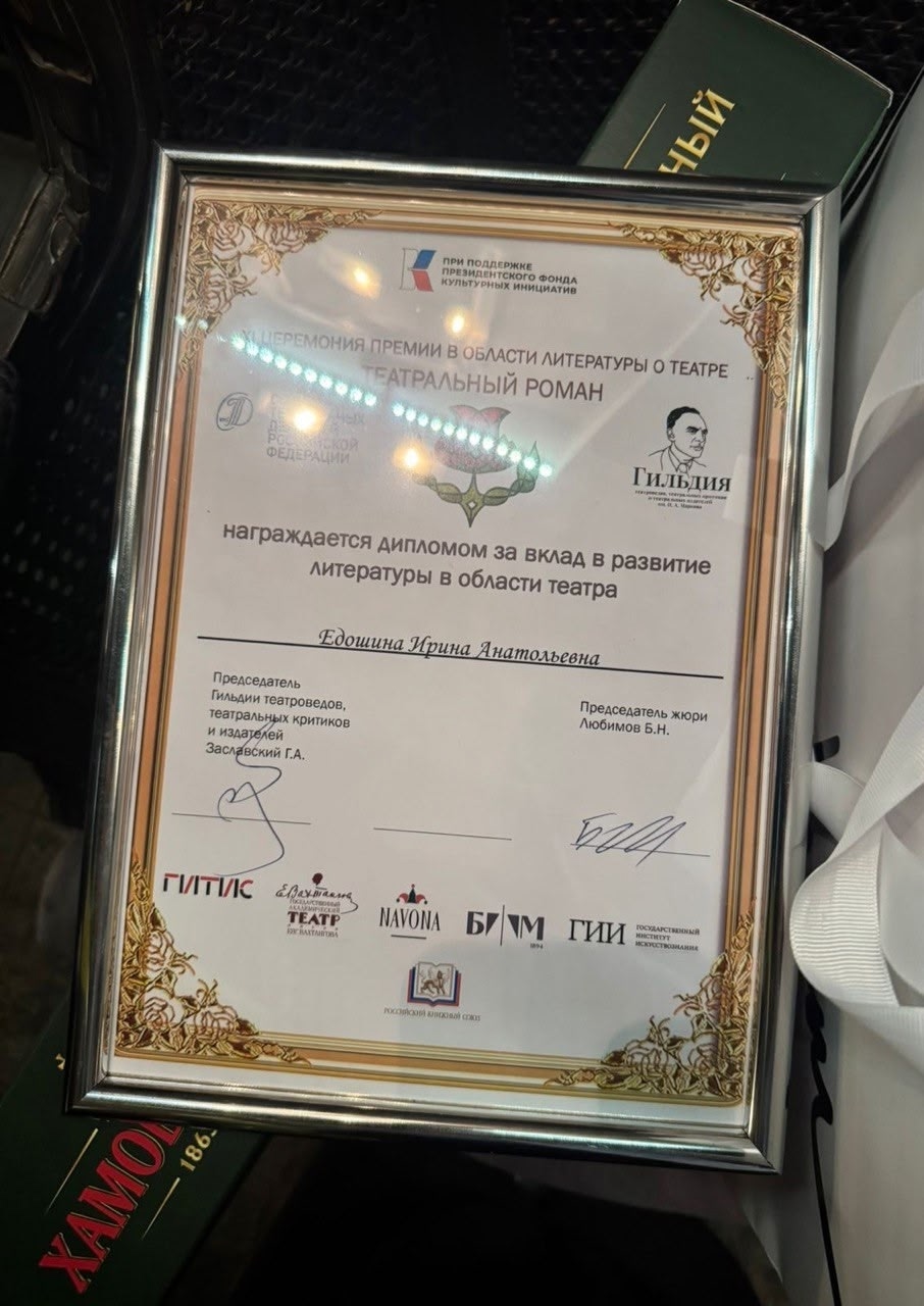 Теперь этой премии удостоена и профессор КГУ, доктор культурологии Ирина Едошина. Ирина Анатольевна является известным исследователем и авторитетным специалистом в области литературного краеведения и семиотики культуры, а также автором более 100 публикаций, посвященных истории русского, английского и американского театра.